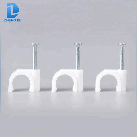 Üreticileri sabitleme elektrik teli su geçirmez plastik çelik tırnak beyaz düz daire yol kablo klipsi